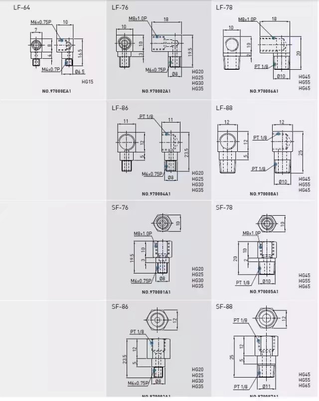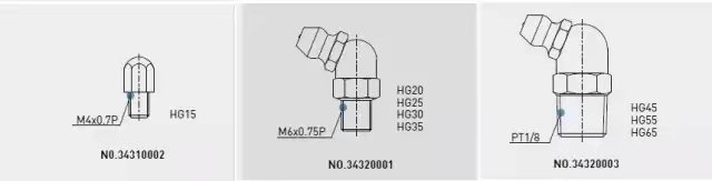 滑塊標配油嘴除HG15油嘴是直的,其他都是彎的。