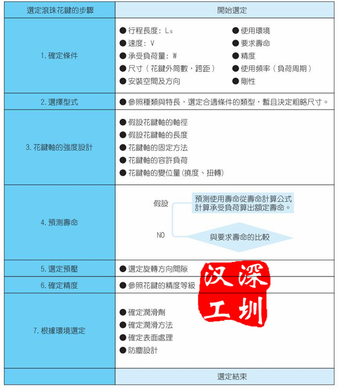 滾珠花鍵的的選擇流程(具體參閱下表):