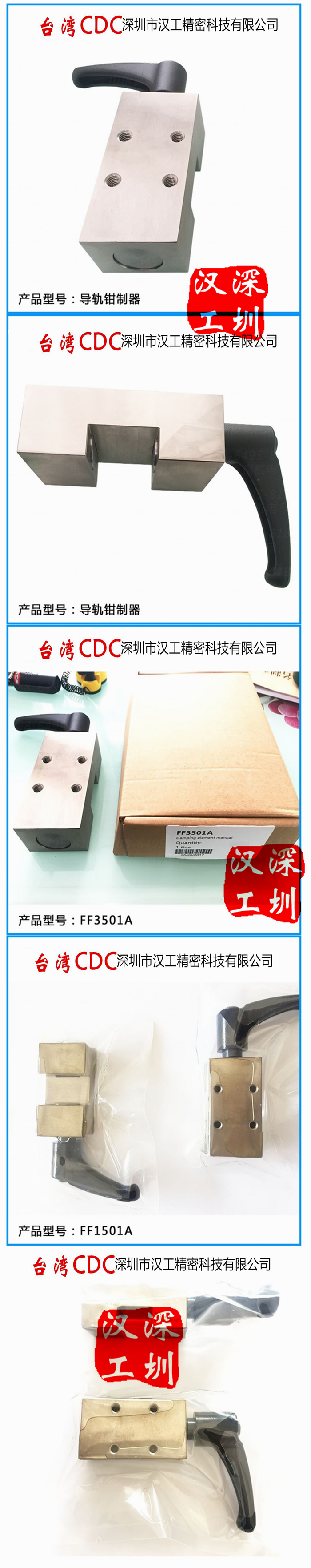 導軌鉗制器:是用于直線導軌及光軸的鉗制器元件,也被稱為導軌剎車、導軌鎖,導軌鎖緊裝置等。
