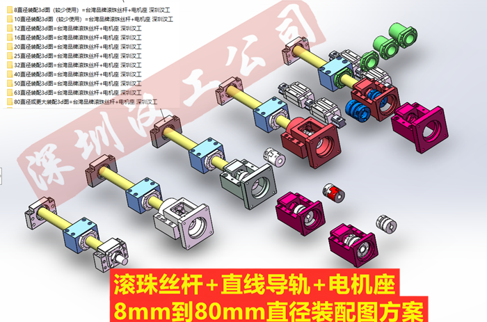 1、導軌滑塊、滾珠絲杠、絲桿電機座、直線模組等3d圖請聯系客服索取!