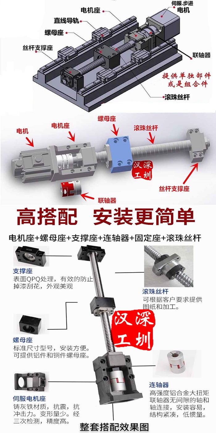1、導軌滑塊、滾珠絲杠、絲桿電機座、直線模組等3d圖請聯系客服索取!