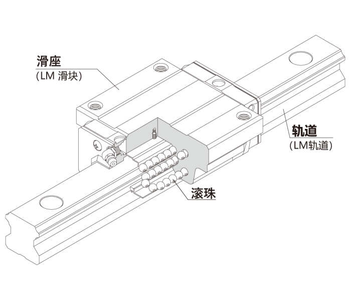 直線導軌是使用旋轉運動的軸承,使重物輕松、筆直運動的機械要素部件。ISO稱之為“Recirculating linear ball bearing”,JIS稱之為“滾珠循環直線軸承”,日本機床工業會稱之為“直線導軌”。THK株式會社將其稱為LM滾動導軌(Linear Motion Guide)。其他亦有諸如直線運動球導軌等多個名稱,有時也被稱為直線軸承,意思是用于直線運動的軸承,這個名稱是相對于用于旋轉運動的軸承而言的。