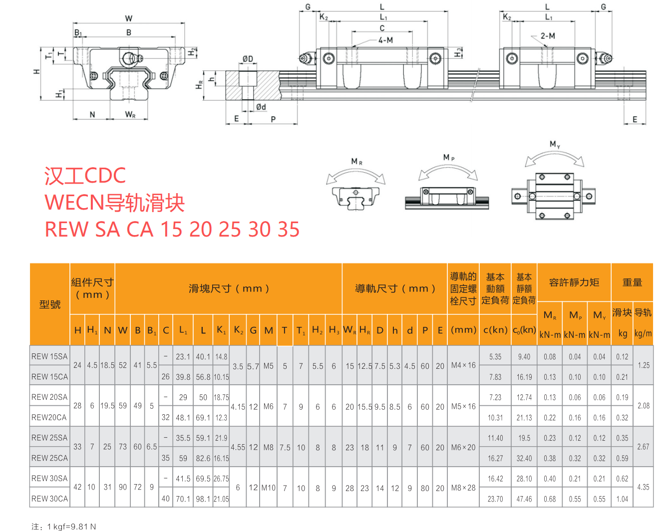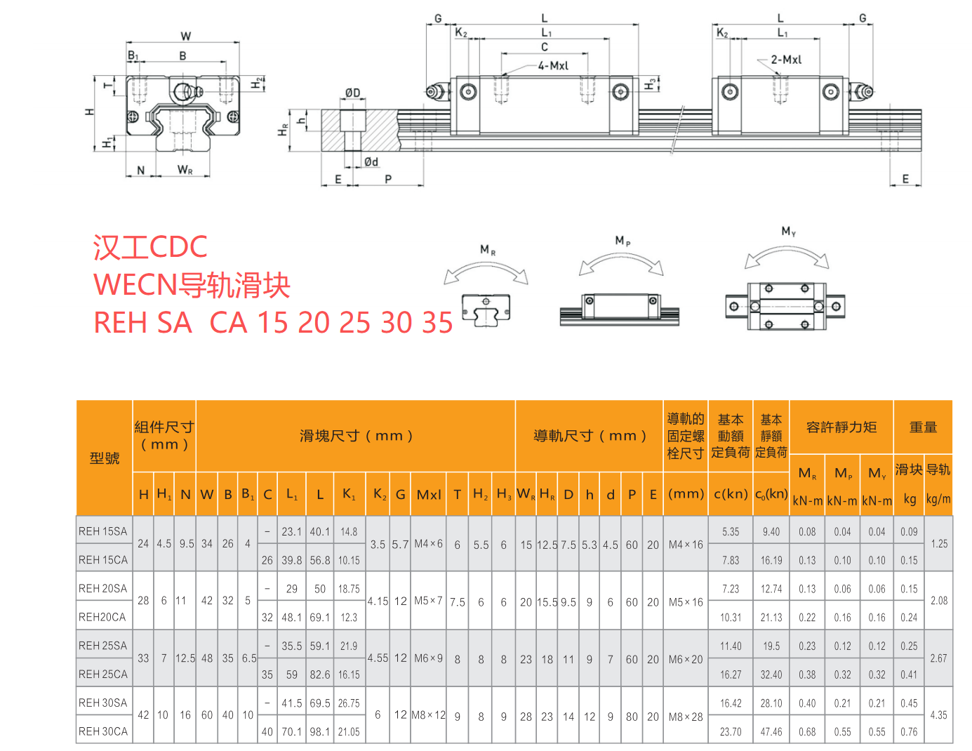 漢工WECN滑塊導軌RE系列尺寸圖