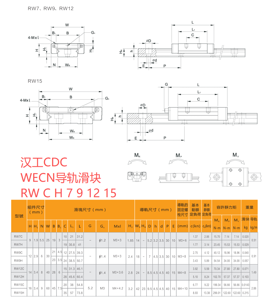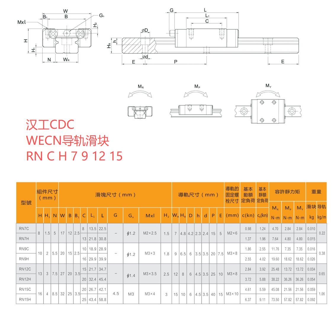 直線導(dǎo)軌滑塊RN系列尺寸圖WECN WCCN品牌