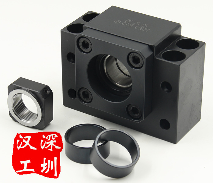 滾珠絲桿支撐座是連接絲桿和電機(jī)的軸承,構(gòu)造與特長對標(biāo)準(zhǔn)滾珠絲桿庫存品的軸端成品,預(yù)備了標(biāo)準(zhǔn)化的支撐單元EK、EF型,對一般滾珠絲桿預(yù)備了標(biāo)準(zhǔn)的支撐單元BK、BF型。固定側(cè)的支撐單元裝有經(jīng)預(yù)壓調(diào)整的JIS5級的角接觸球軸承。