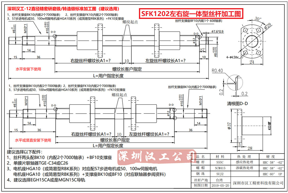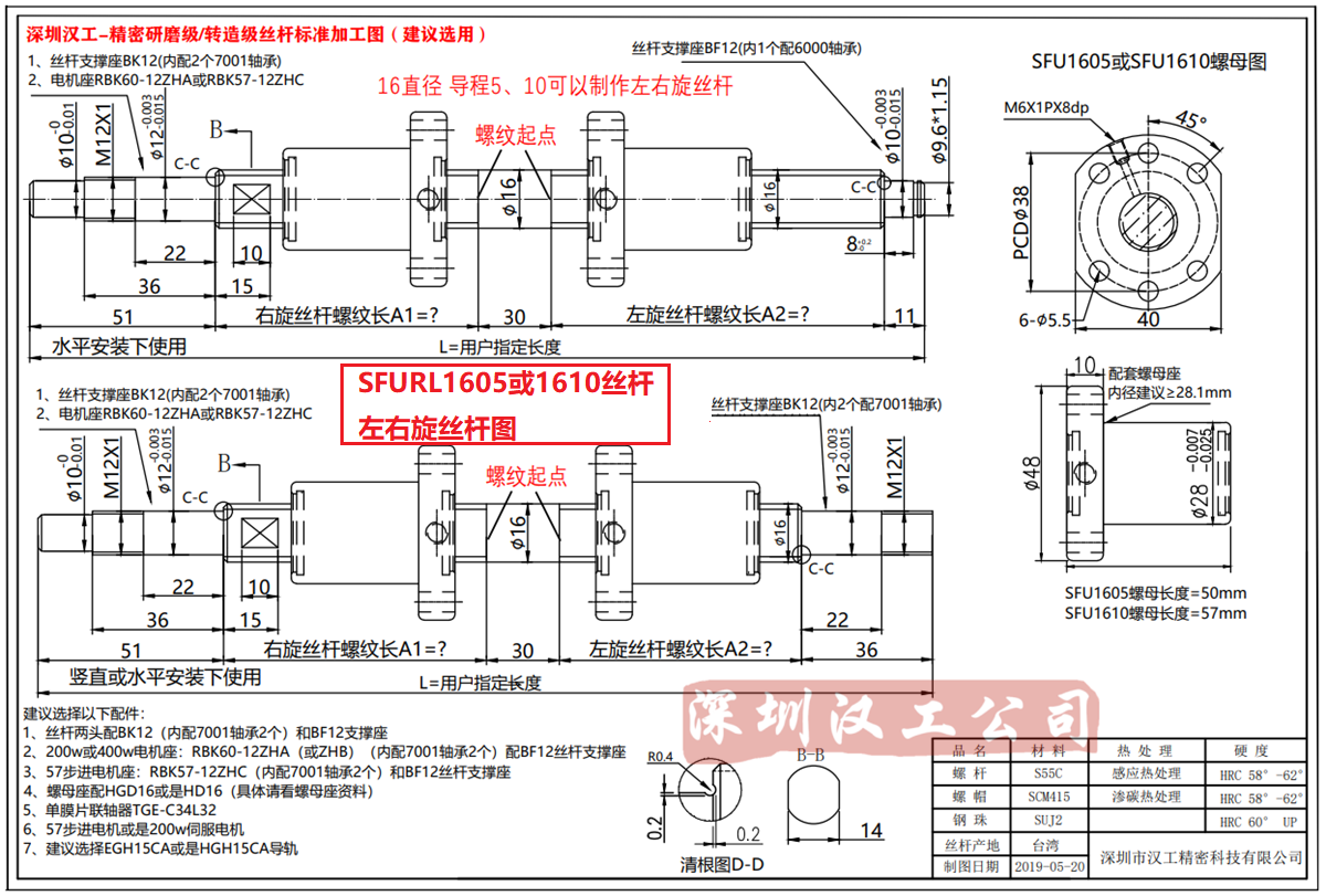 20直徑左右旋絲桿:SFU2005 、SFS2020、SFY2020