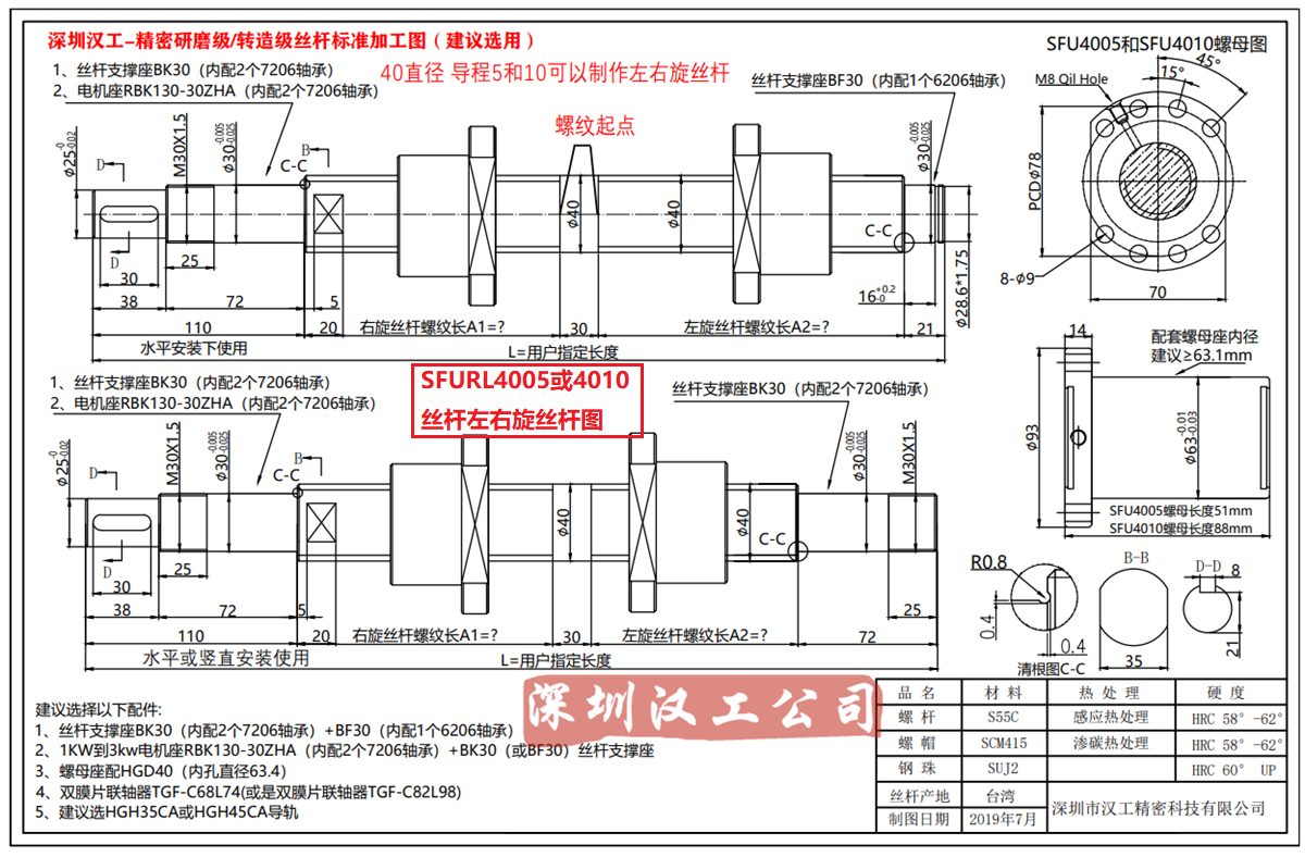 40直徑左右旋絲桿:SFU4005、SFU4010
